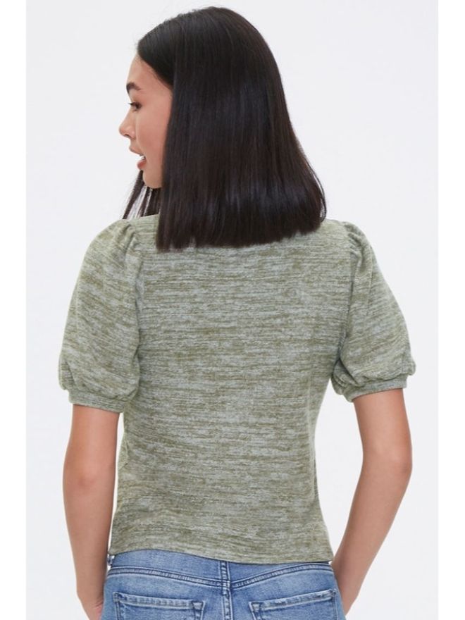 Marled Peasant-Sleeve Top